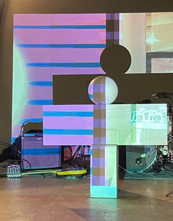 Photo 2 & 3: Stage at OCCI with projections and installation by Wineke Gartz, together with Oorbeek playing life.