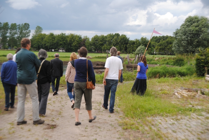 Performance walk, and special setting for Tafelontmoeting - Garage Rural.e, at the Jofrahoeve, Esch (NL). Commissioned by Euro Land Art & BKKC